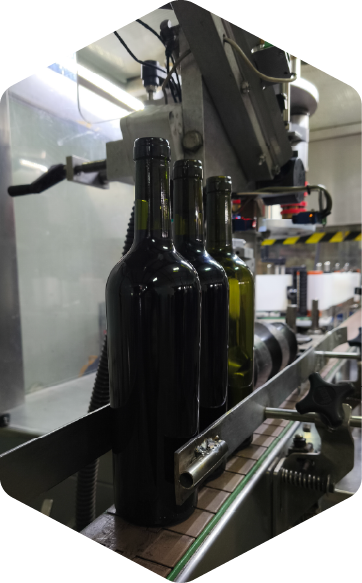 Vestido para botellas de vino con etiquetadoras italianas de alta calidad (2400 bot/h), capsuladora automática de 4 cabezales y etiquetado simultáneo de frente y dorso máxima precisión.